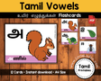 Tamil Vowels Flashcards with Letters and Pictures help learners of the Tamil language to master the vowel sounds.